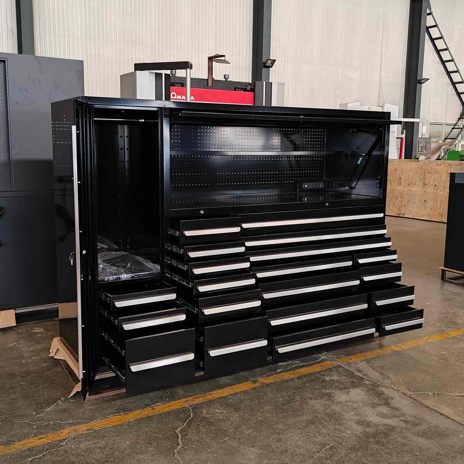 Қара көп функционалды құрал шкафы беріктік пен бетті жақсартуды қамтамасыз ететін суық илектелген болаттан жасалған.ЦИУЗИКАҚажетті өлшемді, конфигурацияны және аксессуарларды теңшей алады. Соңында, ең бастысы, ол салалық стандарттарға сәйкес келеді.