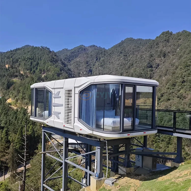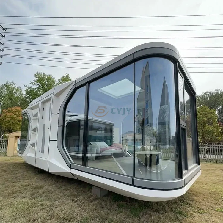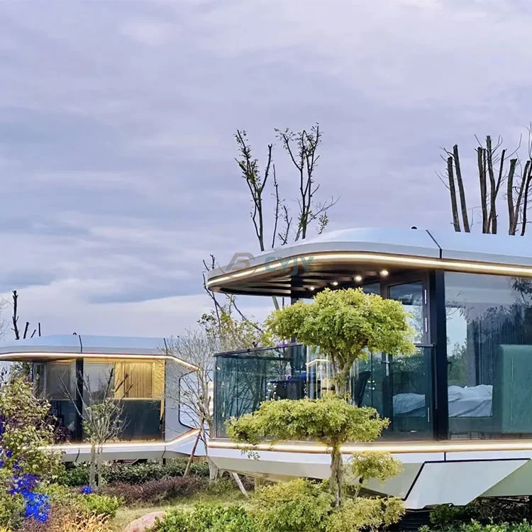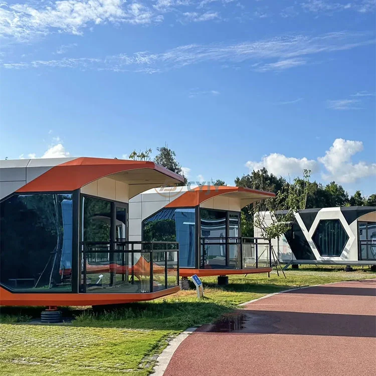 Футуристік формасы:Капсула үйі заманауи дизайнды қабылдайды, ал сыртқы түрі ғарыш кемесіндегі ғарыш кемесіндегі немесе ғылыми фантастикалық фильмдердегі ғарыштық капсуладан шабыт берген технологияға толы. Оның ерекше пішіні тек әдемі ғана емес, сонымен қатар желге төзімділікті және әртүрлі орталарға бейімделеді.