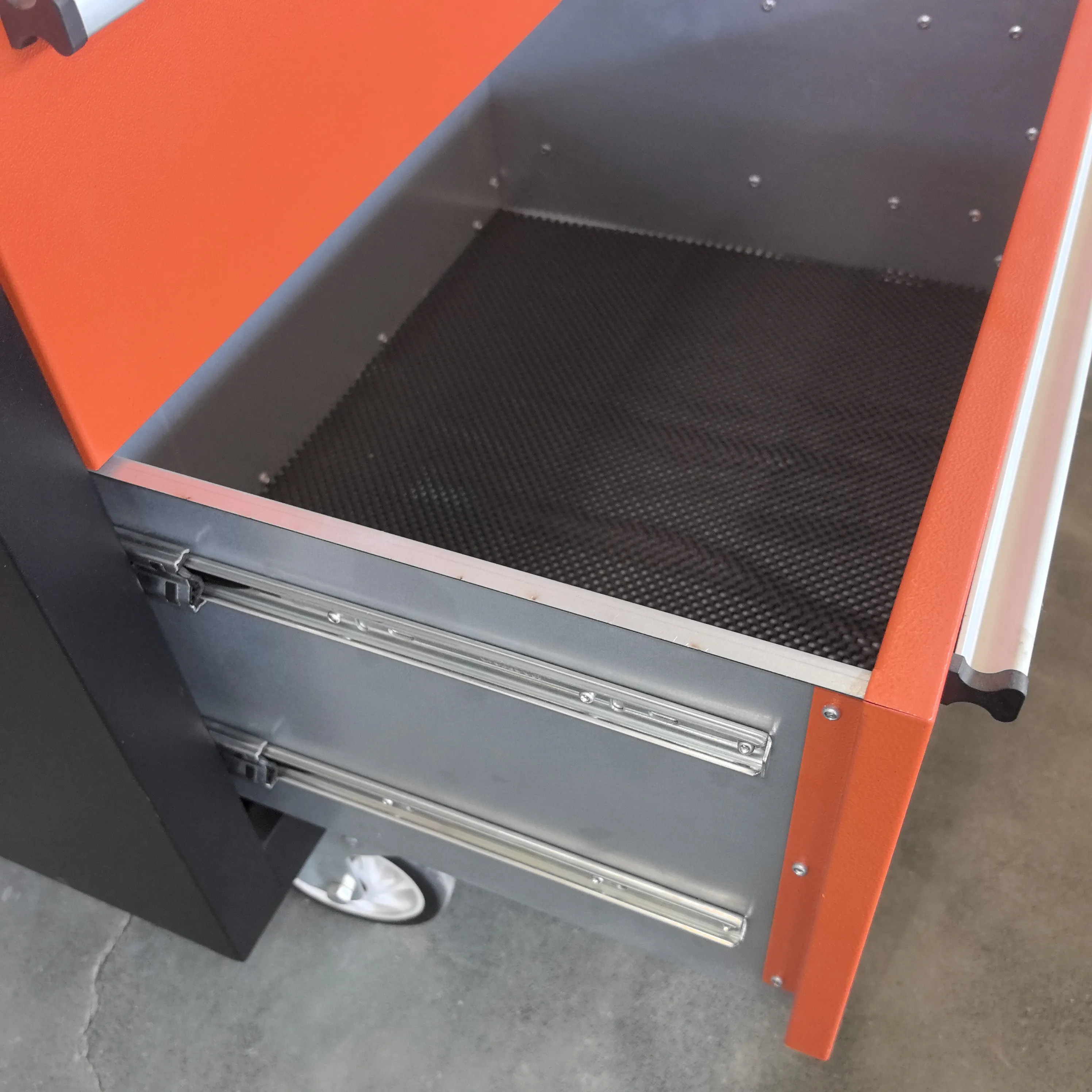 Құралды сақтау шкафтарын бірнеше орналасу параметрлері бар, жұмсақ жабысқақ слайдерлер, жұмсақ жабылған сызғыштар, толық кеңейту мүмкіндігі және көбік тартпасы бар слайдтар, теңшелетін кескіштері бар қопсытқыштары бар.